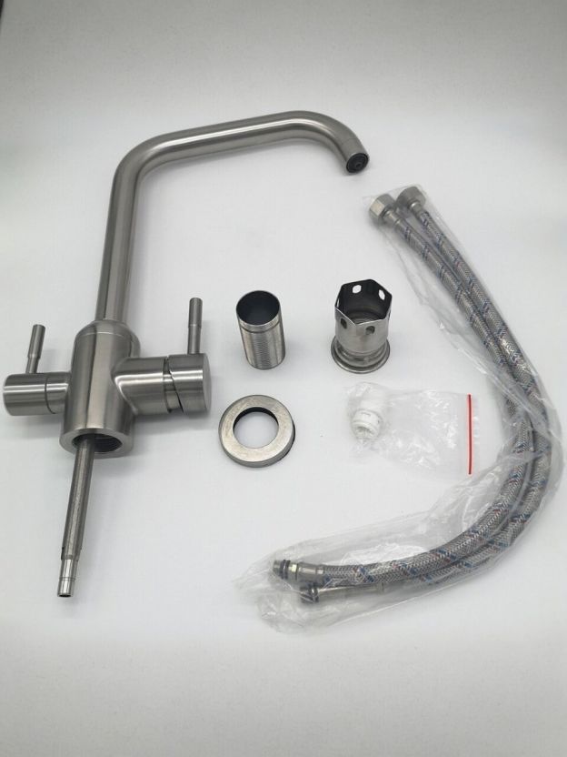 В комплекте предусмотрен переключатель на фильтр и стандартная гибкая подводка 1/2". Монтаж занимает до 10 минут: подключите фильтр к отдельному входу смесителя, и вы сможете выбирать между обычной и питьевой водой одним движением рычага.