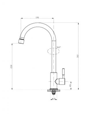Высота излива — 23 см, длина — 19,5 см. Такой размер обеспечивает удобство для мытья крупной посуды и наполнения высоких ёмкостей.