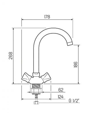 Управление — двухвентильное, смеситель не оснащён переключателем на фильтр воды.