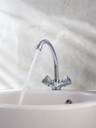 - Двухвентильный смеситель с керамической кран-буксой — плавное и точное регулирование температуры воды