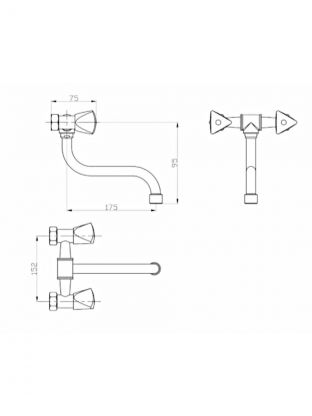 Излив средней длины — 17,5 см, межосевое расстояние 150 мм, монтаж на два отверстия диаметром 25 мм. Подключение стандартное — 1/2", установка вертикальная, настенная, крепление через эксцентрики.