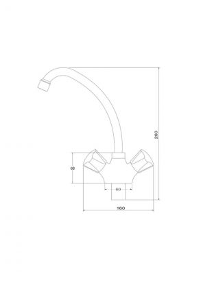 • Средний излив 18x20 см, классический стиль, монтаж в одно отверстие диаметром 25 мм
