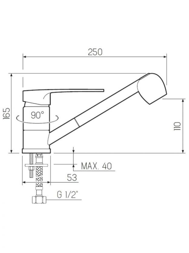 Смеситель для кухни, РМС, выдвижной излив, с картриджем, хром, SL52-014