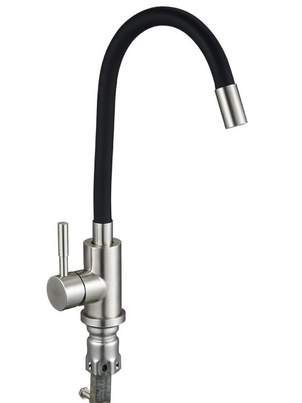 - Благодаря гибкости излива появляется возможность направлять струю в любые части мойки, без труда наполнять любые емкости водой. Такая модель позволяет с легкостью мыть высокие стаканы, вазы и графины.
