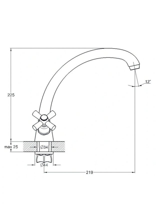 Для установки требуется одно отверстие диаметром 34 мм, стандартная подводка 1/2". Монтаж горизонтальный, крепление — гайка.