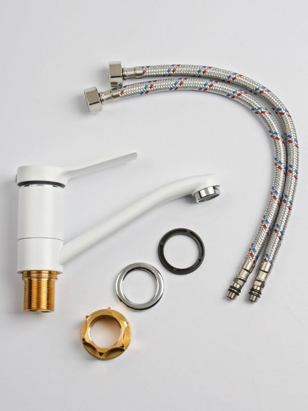 Если вы ищете, какой смеситель выбрать для раковины с одним отверстием, обратите внимание на Aqwin A45292W: он оснащён гибкой подводкой (2 шланга по 35 см в комплекте), что упрощает установку даже в ограниченном пространстве. Встроенный аэратор обеспечивает мягкую струю без брызг, а керамический картридж — плавное и точное регулирование температуры воды. В отличие от аналогов с пластиковым корпусом, этот смеситель устойчив к механическим повреждениям и не желтеет со временем.