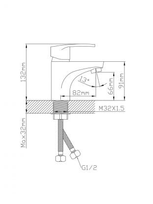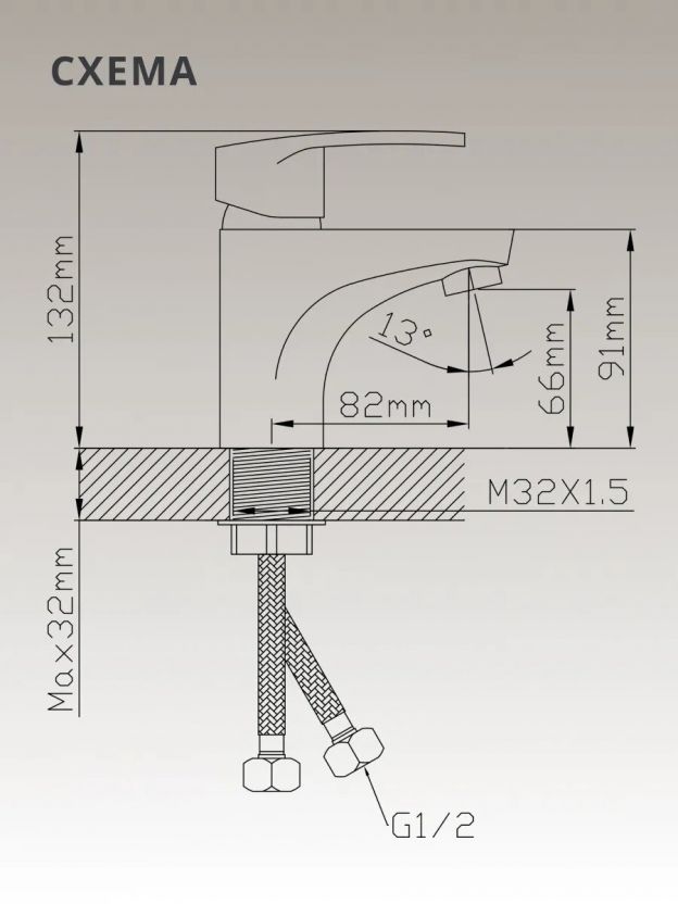 Для монтажа требуется одно отверстие диаметром 35 мм. Стандартная подводка — 1/2", что подходит для большинства домашних раковин.