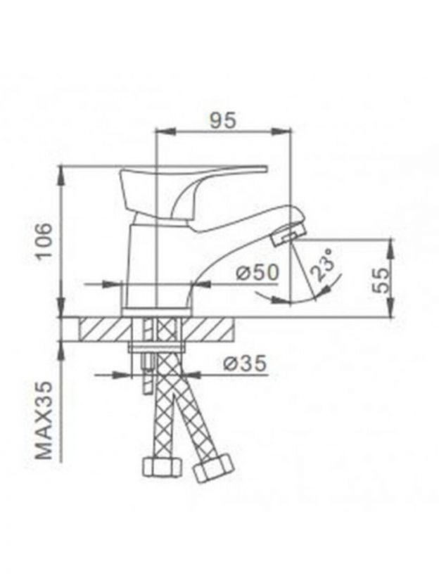 Для установки требуется 1 отверстие диаметром 35 мм, стандарт подводки — 1/2". Такой размер подходит для большинства современных раковин.