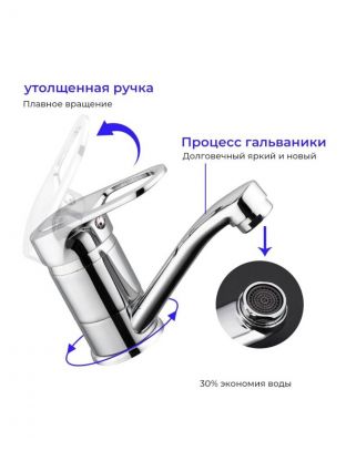 • Компактный поворотный излив — удобно для маленьких раковин и экономии пространства