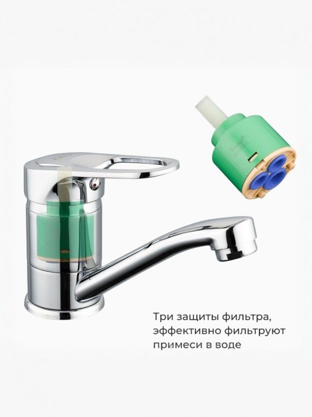 Керамический картридж обеспечивает плавное управление, защищает от протечек и рассчитан на длительный срок службы даже при регулярном использовании.