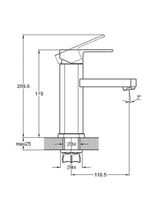 G.lauf NEB1-A123 с коротким изливом (11,9 см) идеально подходит для компактных умывальников. Монтаж через одно отверстие (диаметр 34 мм), горизонтальная установка, гибкая подводка и стандарт 1/2" делают установку простой и быстрой.