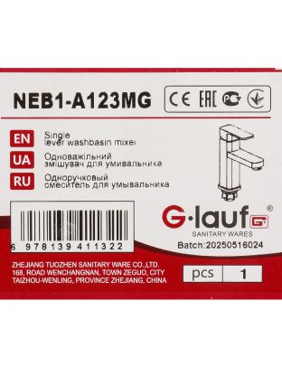 Смеситель для раковины G.lauf NEB1-A123MG — современный дизайн, надежный цинковый корпус и матовая поверхность для стильной ванной. Легкая установка за 10 минут.