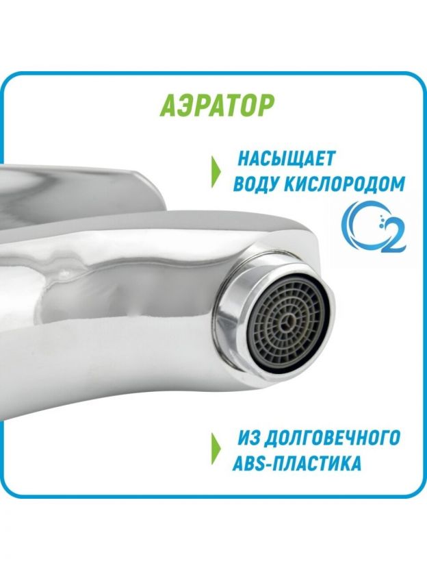 Короткий излив (11,5 см) экономит место, подходит для компактных раковин, предотвращает разбрызгивание воды и облегчает уход за сантехникой.