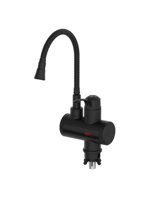 Смеситель Potato P0060-6 с гибким изливом и проточным водонагревателем — горячая вода за 3 секунды, экономия места и стильный черный дизайн для кухни и ванной.