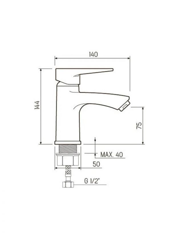 Для установки смесителя требуется 1 отверстие диаметром 35 мм. Крепление осуществляется гайкой, стандарт подводки — 1/2".