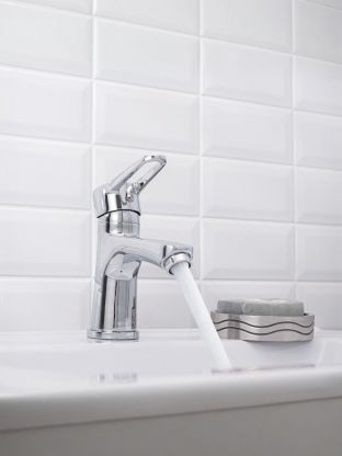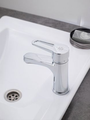 Высота излива — 7,5 см, длина излива — 12 см. Это оптимальный размер для стандартных умывальников и раковин.