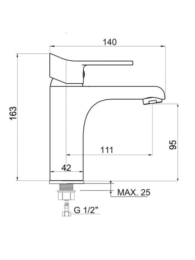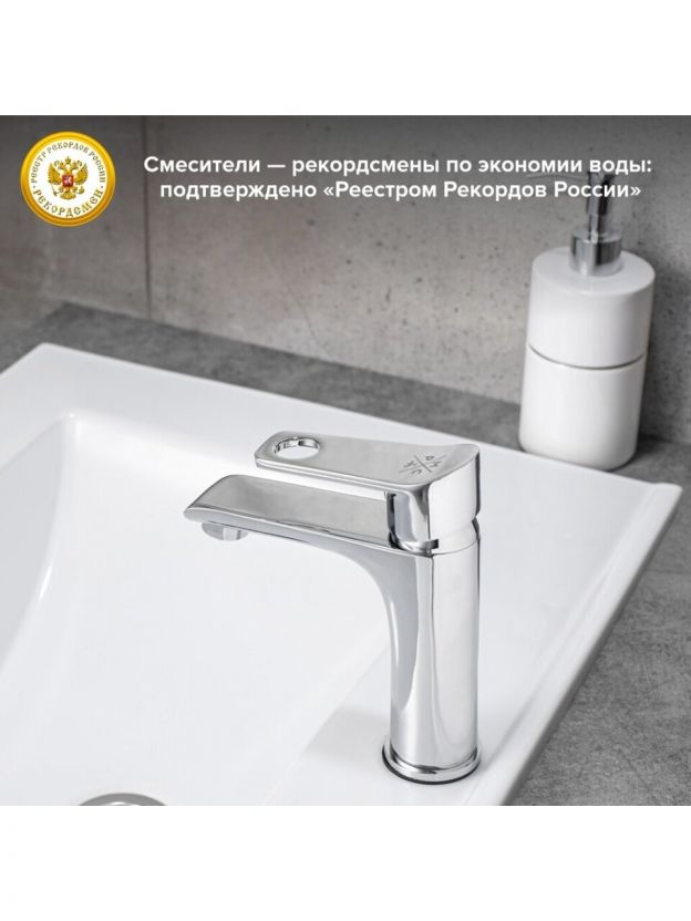 Короткий излив (11,1 см) уменьшает разбрызгивание воды, экономит место и подходит для компактных раковин — это удобно для дачи, гостевого санузла или небольшой ванной комнаты.