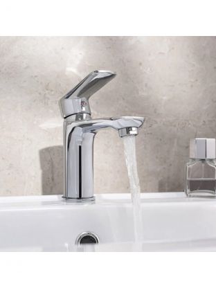 РМС SL133-001F с коротким изливом (8,6 см высота, 11,2 см длина) занимает минимум места, подходит для небольших умывальников и обеспечивает аккуратную подачу воды без разбрызгивания.