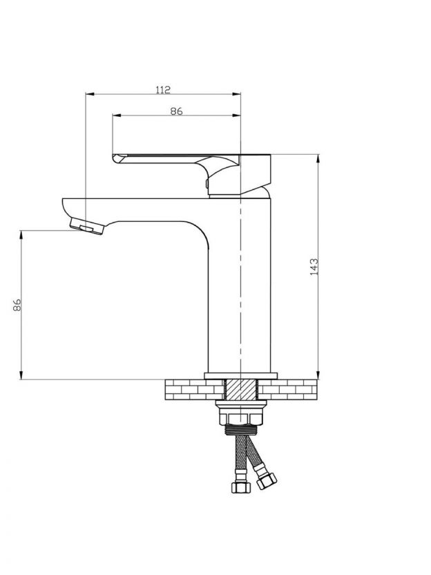 Горизонтальный монтаж через 1 отверстие диаметром 35 мм, стандарт подключения шланга — 1/2", крепление на гайку, гибкая подводка в комплекте.