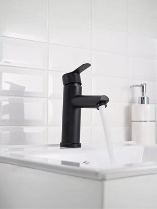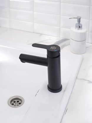 - Компактный размер: короткий излив (10 см) и монтаж в одно отверстие 35 мм — идеален для стандартных и небольших раковин