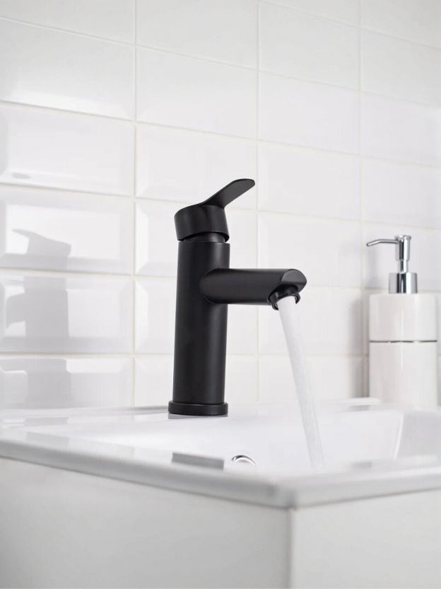 Смеситель устанавливается в стандартное отверстие диаметром 35 мм, подходит для большинства раковин и умывальников.