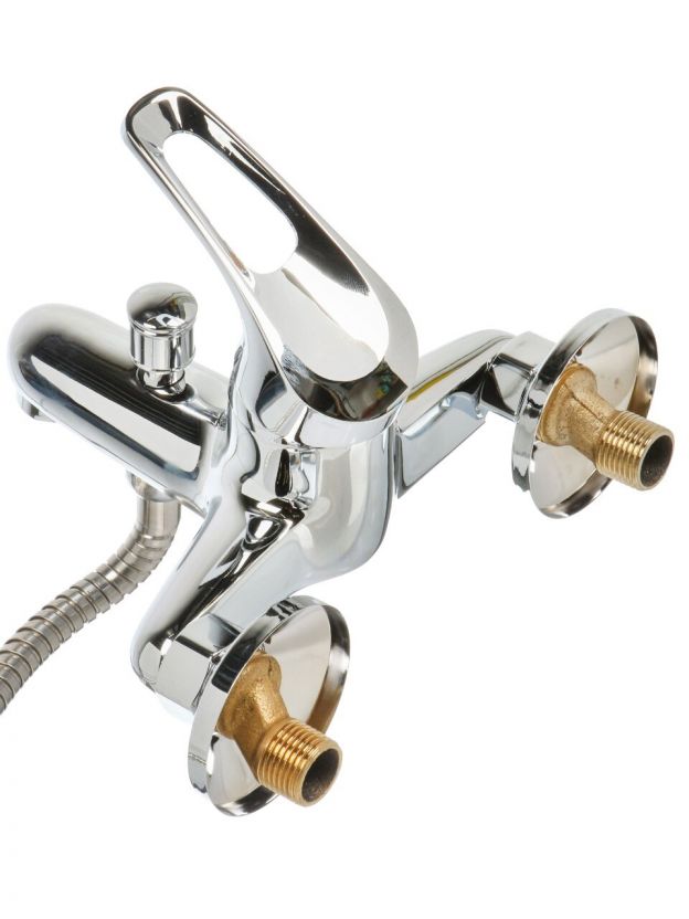Смеситель выполнен из прочного металла с хромированным покрытием, что гарантирует устойчивость к повреждениям и долгий срок службы. Стандартные размеры подходят для большинства ванн и сантехнических систем.