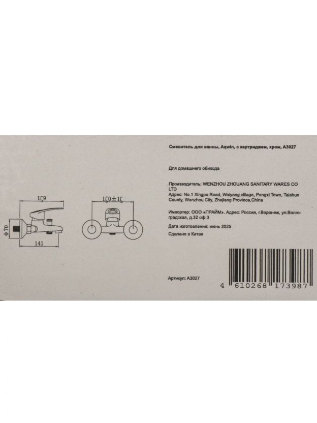 Оформите заказ сейчас — получите смеситель для ванны Aqwin A3027 с гарантией, быстрой доставкой и поддержкой по установке. Надёжное решение для комфортной ванной комнаты по доступной цене.