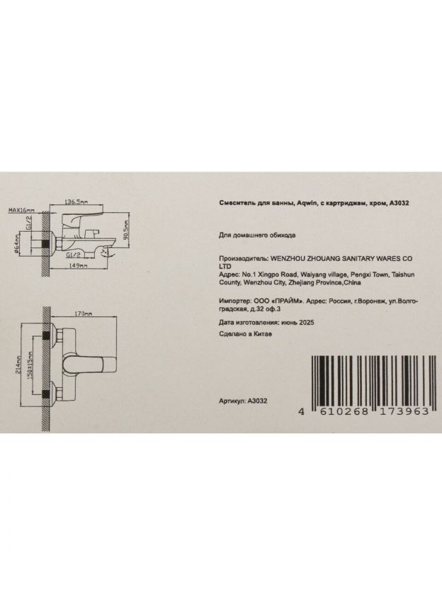 Закажите смеситель для ванны Aqwin A3032 прямо сейчас — получите гарантию производителя и бесплатную консультацию по установке. Надёжность, стиль и выгодная цена уже доступны для вашего дома.
