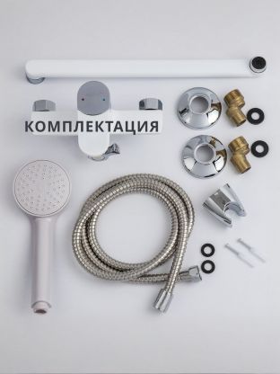 Смеситель для ванны Aqwin A22223-7: белый матовый корпус, длинный поворотный излив 35 см, керамический картридж — надёжность и стиль для вашего дома.