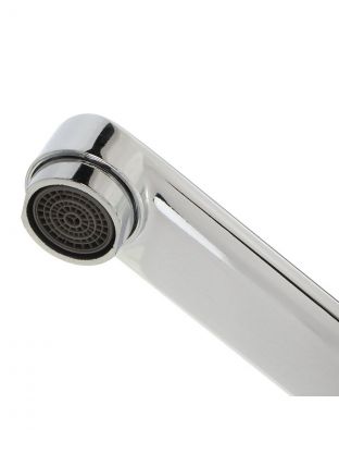 Корпус изготовлен из цинкового сплава с глянцевым хромированным покрытием, внутри установлен керамический картридж для долговечной работы и плавного управления потоком воды.