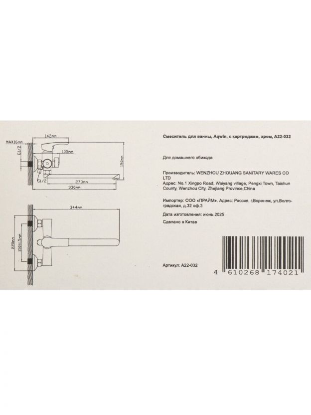 Смеситель для ванны Aqwin A22-032 — надежное решение с долговечным картриджем и стильным хромом для вашего дома или дачи. Легко выбрать, просто установить.