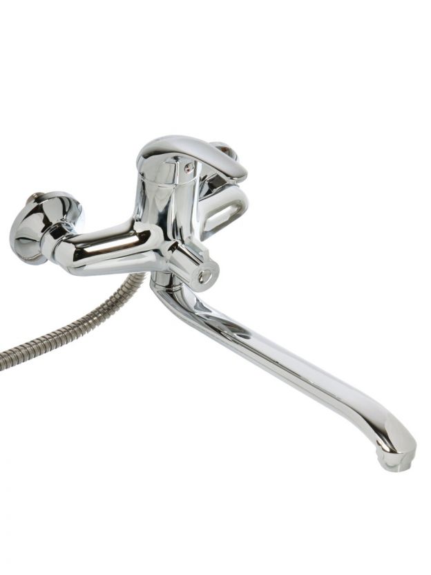 Длинный поворотный излив (35 см) облегчает набор воды в ванну или ведро, позволяет удобно использовать смеситель и для раковины, если она расположена рядом.
