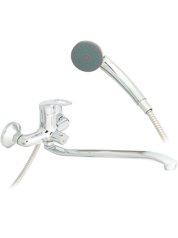 Поворотный длинный излив позволяет удобно набирать воду в ванну и использовать смеситель для мытья, не разбрызгивая воду, а также облегчает уход за сантехникой.