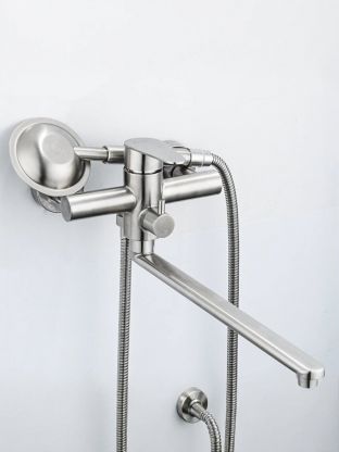 Этот смеситель для ванны отличается длинным поворотным изливом (35 см), что удобно для наполнения больших ванн и мытья аксессуаров. В комплекте — душевая лейка с одним режимом, шланг 1,5 м и держатель. Модель устанавливается вертикально на стену через 2 отверстия с межосевым расстоянием 150 мм. Подходит для стандартной подводки 1/2". Если вы ищете недорогой смеситель для дачи или квартиры, Frap F2248 сочетает надежность и современный стиль, превосходя аналоги с пластиковым корпусом по прочности и сроку службы.