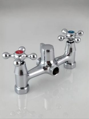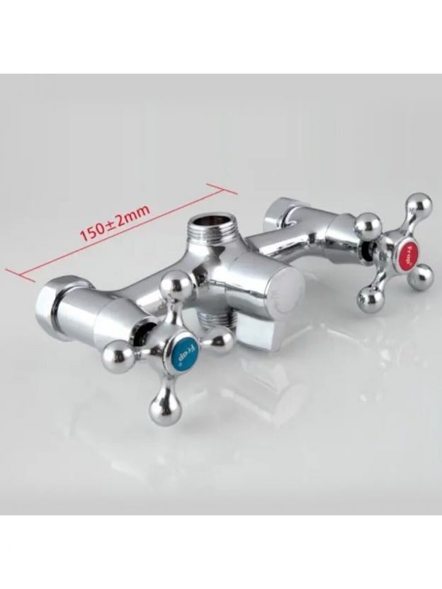 • Материал — латунь с глянцевым хромированием: устойчив к коррозии, рассчитан на долгий срок службы, межосевое расстояние 150 мм