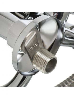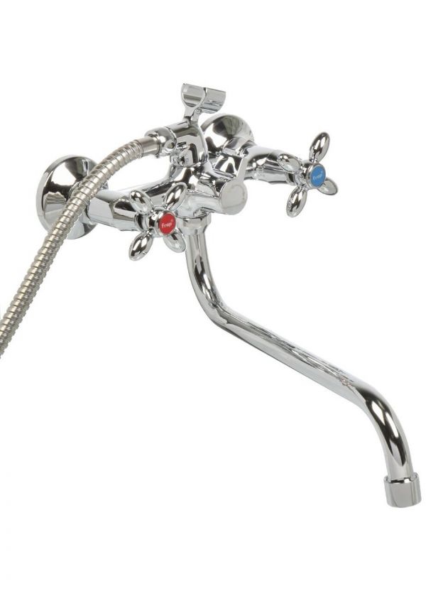 Смеситель оснащён длинным поворотным изливом 30 см, что удобно для наполнения ванны и использования душа.