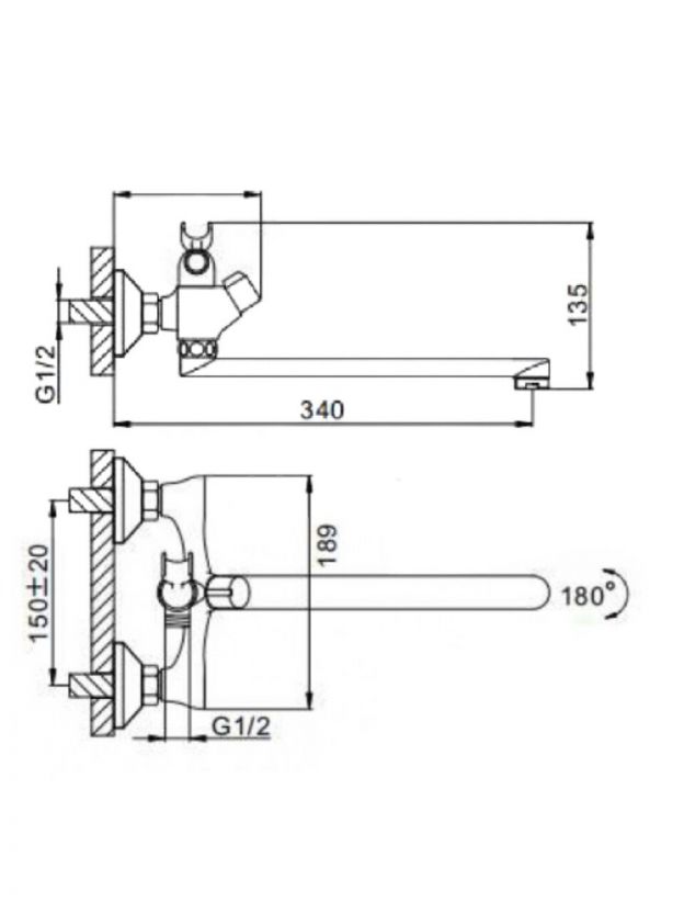 Да, смеситель Frap F22731-B подходит для монтажа на стандартные ванны с двумя отверстиями и межосевым расстоянием 150 мм. Стандарт подключения шланга — 1/2", монтаж вертикальный, настенный.