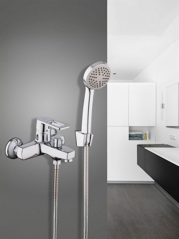 Как использовать смеситель Frud R32072? Просто поверните рычаг для регулировки напора и температуры, переключитесь на душ при необходимости — всё интуитивно и удобно даже для пожилых людей. Подходит ли для монтажа на стену? Да, предусмотрен вертикальный настенный монтаж с двумя отверстиями, что облегчает замену старого оборудования.