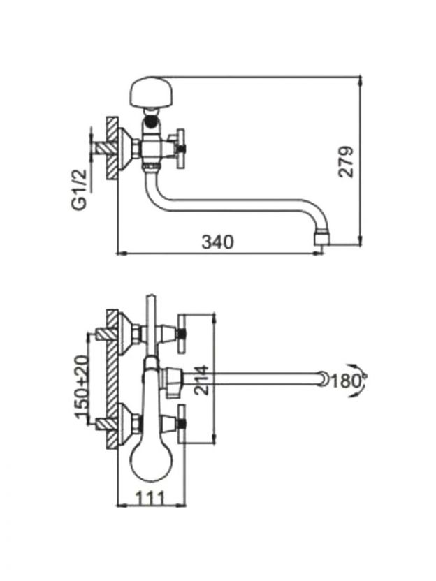 - Удобство монтажа: подходит для стандартных межосевых расстояний 150 мм, настенный вертикальный способ установки