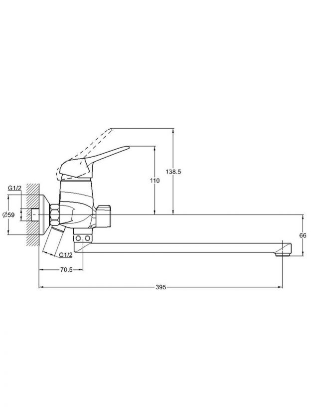Модель предназначена для вертикального настенного монтажа с использованием двух отверстий и эксцентриков. Стандарт подводки шланга — 1/2".