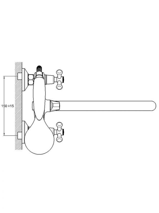 Длина поворотного излива составляет 32 см, что обеспечивает удобство при наполнении ванны и использовании душа.