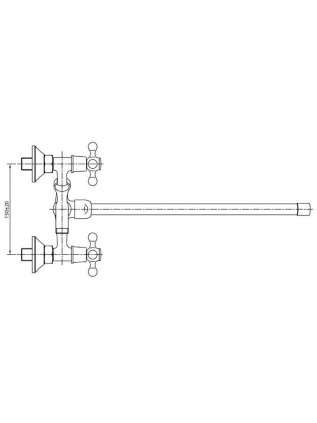 Смеситель устанавливается вертикально на стену с помощью эксцентриков, монтаж возможен на 2 стандартных отверстия с межосевым расстоянием 150 мм.