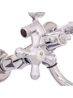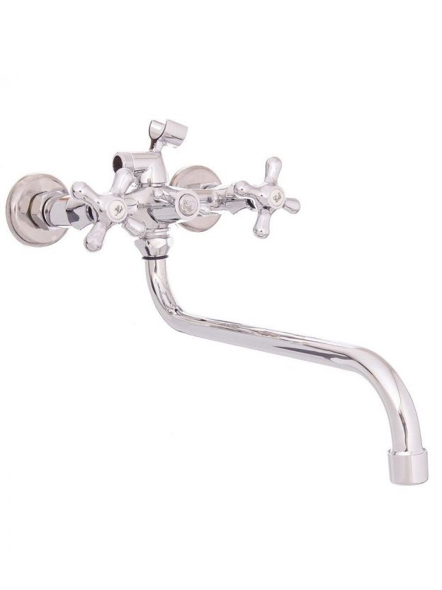 Смеситель оснащен двухвентильным поворотным управлением с керамической кран-буксой, что обеспечивает плавную и точную регулировку напора и температуры воды.