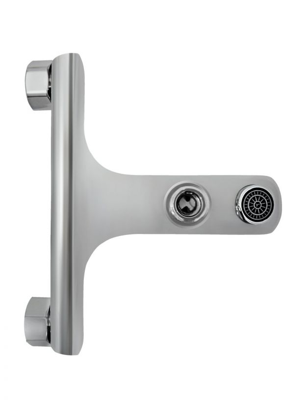 • Короткий излив 16,5 см и вертикальный монтаж на 2 отверстия — оптимально для малогабаритных ванных и душевых.