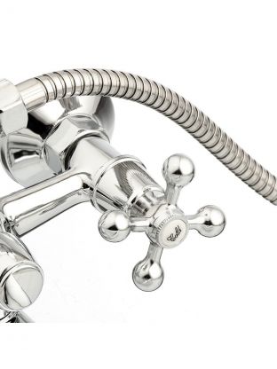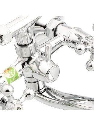 Смеситель оснащен двухвентильным управлением с керамической кран-буксой, что обеспечивает плавную регулировку температуры и напора воды.