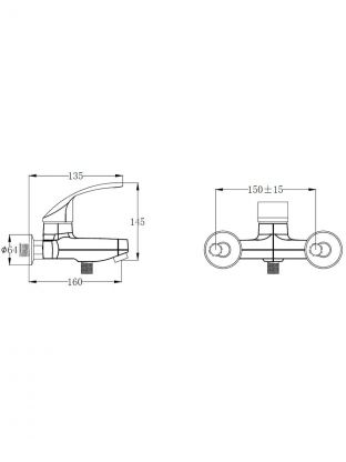 Смеситель устанавливается вертикально на стену с помощью эксцентриков, подходит для стандартных двухотверстных монтажей с межосевым расстоянием 150 мм.