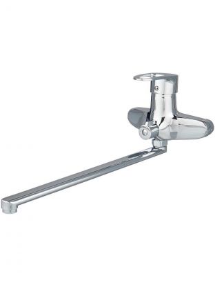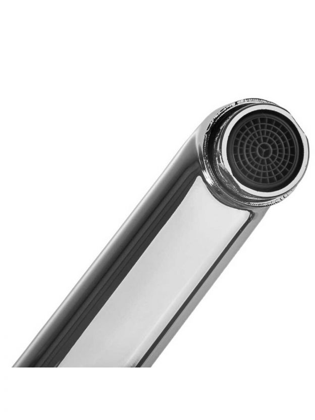 - Корпус из цинкового сплава, глянцевая хромированная поверхность, длинный поворотный излив 37 см