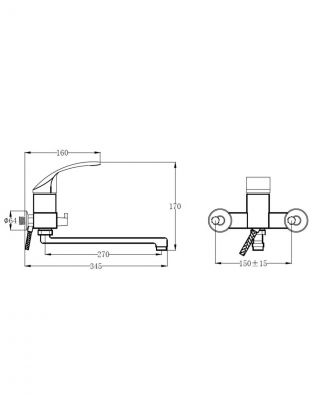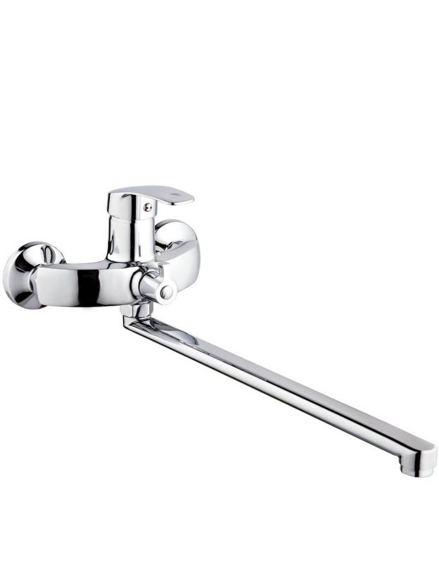 Длина поворотного излива — 27 см, что позволяет удобно набирать воду в ванну или ведро. Размеры оптимальны для большинства стандартных ванн.