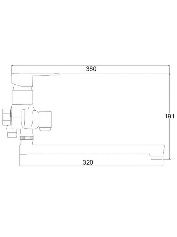 - Длинный поворотный излив 32 см — удобно для ванн любого размера, монтаж на 1 отверстие с межосевым расстоянием 150 мм