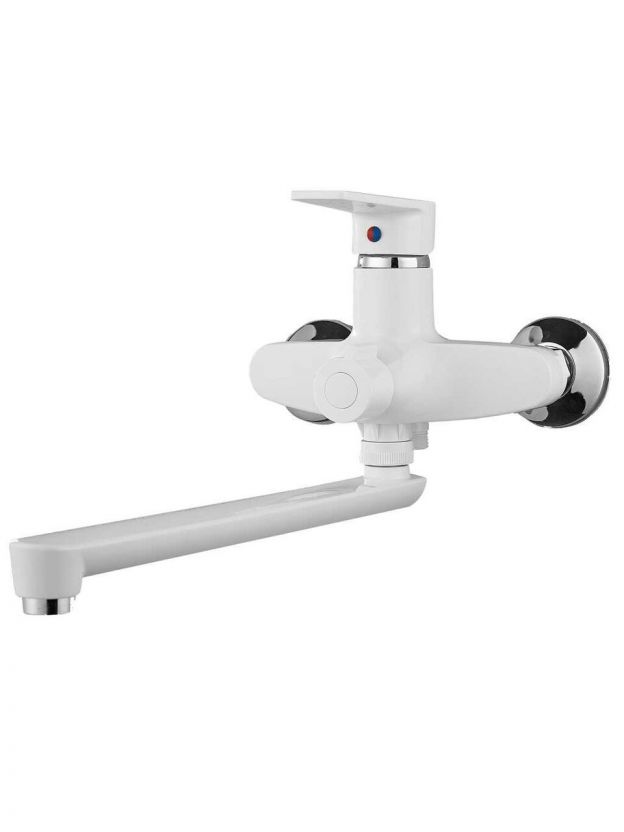 Смеситель для ванны РМС PL6-006E — это современное решение для тех, кто ищет недорогой и практичный смеситель с возможностью быстрого монтажа. Белый матовый пластиковый корпус из ABS-пластика делает модель лёгкой, устойчивой к влаге и механическим повреждениям. Благодаря керамическому картриджу смеситель обеспечивает плавное и долговечное управление потоком воды. Длинный поворотный излив (32 см) удобно использовать для наполнения ванны, мытья рук или набора воды в ёмкости.
